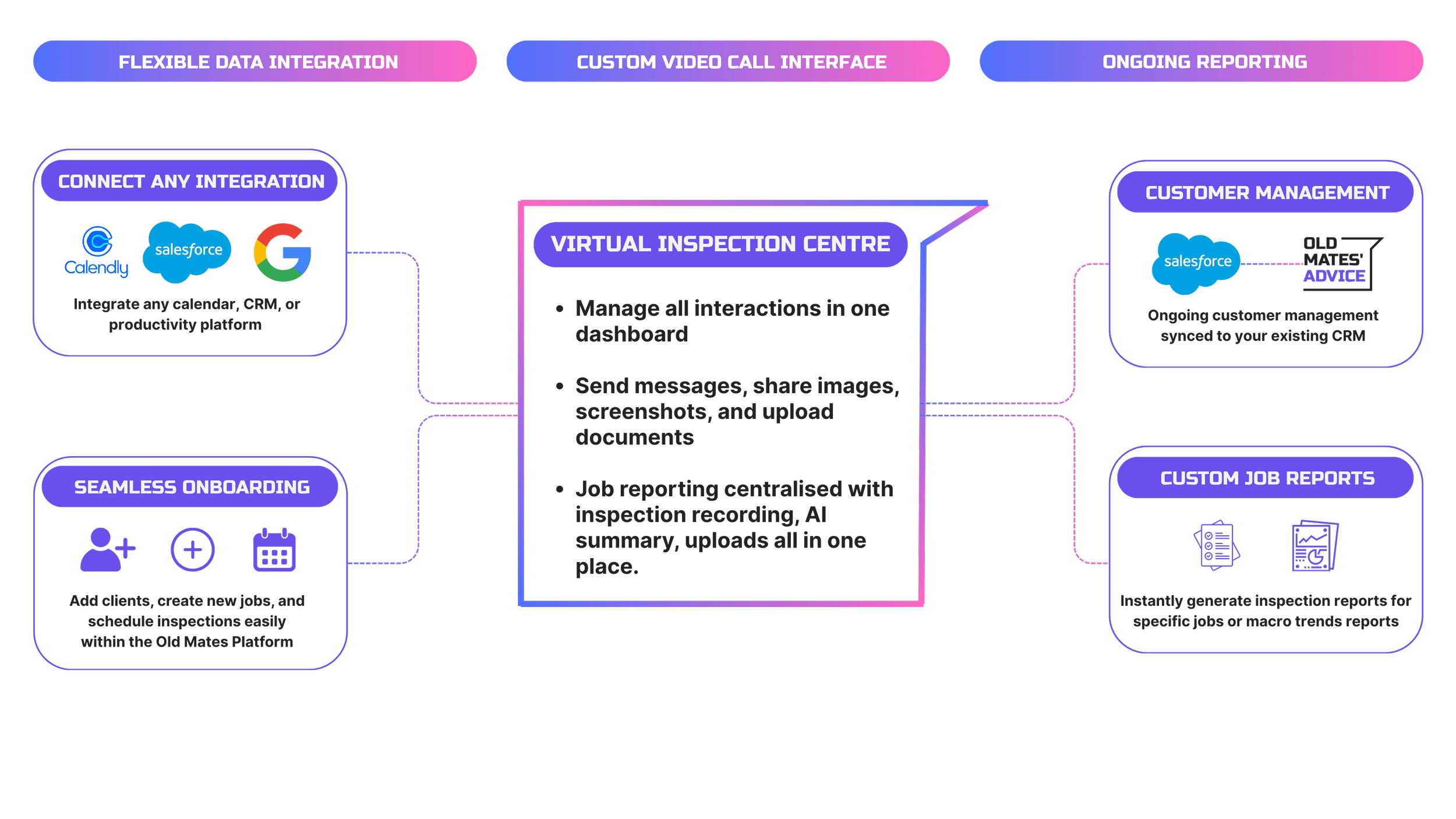 With Old Mates Advice, any booking or enquiry can become a live video inspection. You keep your workflow, while we give you the visibility and control.